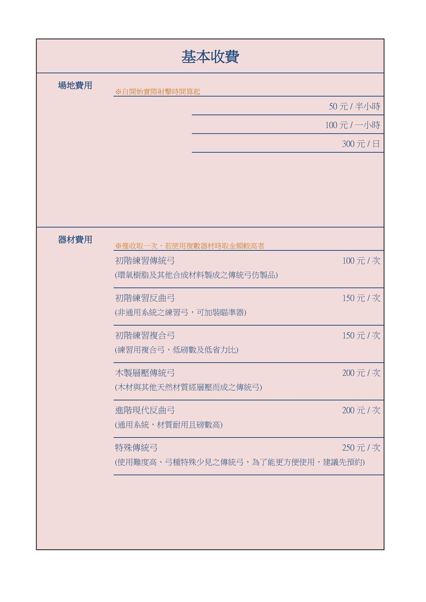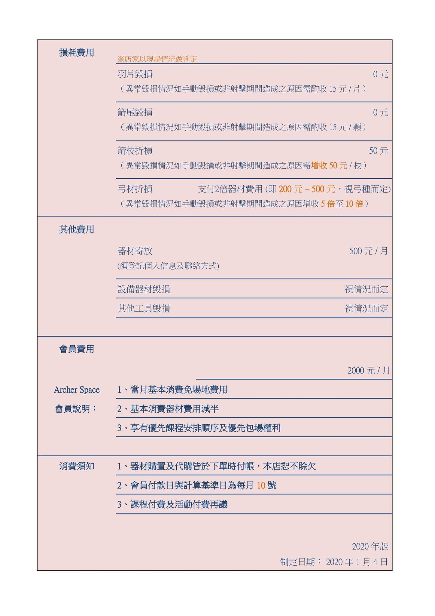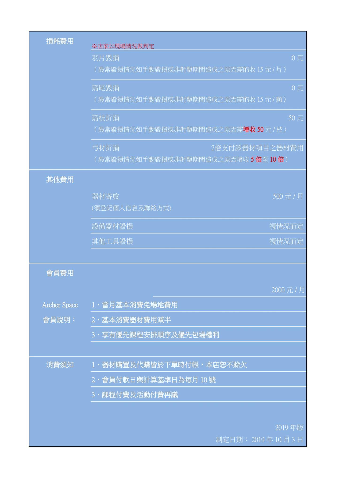 關於弓材毀損的費用 2 倍至 5 倍指的是當日的器材消費金額而非那支弓的成本價格。