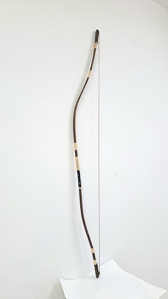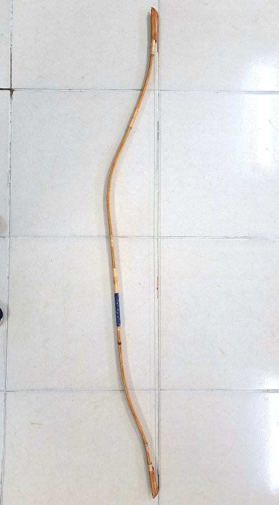竹層壓四半的和弓 ( 非正式認證 ) 弓長約 168 cm,弦長約 160 cm。