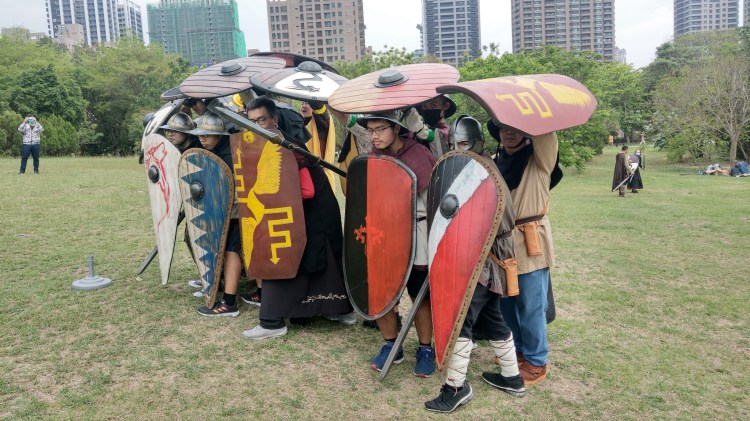 親自扮演冷兵器時期士兵、在泡棉武器及安全弓箭的操作下,